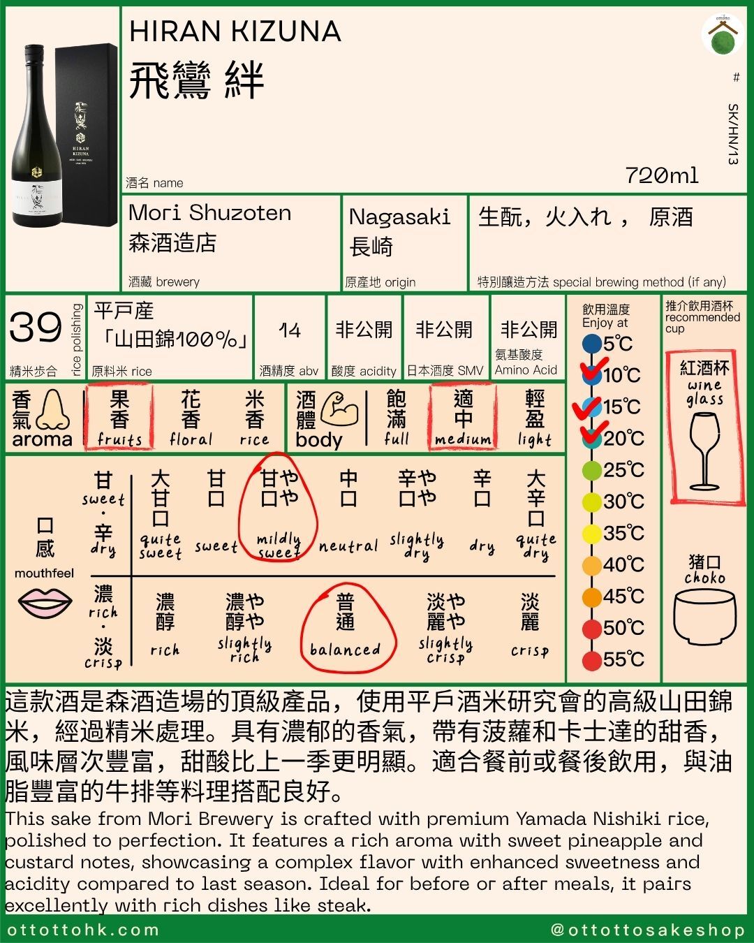 飛鸞HIRAN 絆 (Kizuna) 720ml|森酒造場|九州