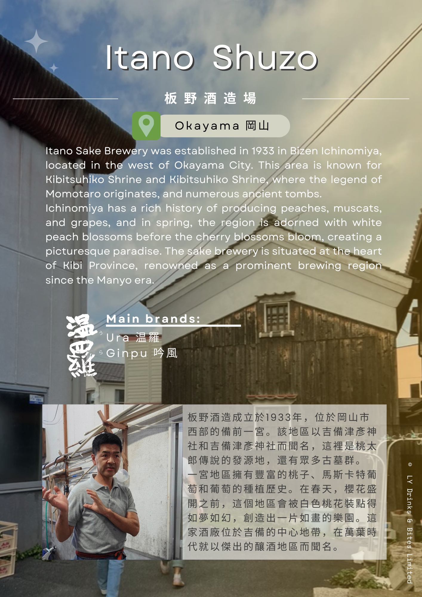 板野釀造場成立於1933年,位於岡山市西部的備前一宮。該地區以吉備津彥神社和吉備津彥神社而聞名,這裡是桃太郎傳說的發源地,還有很多古墓。