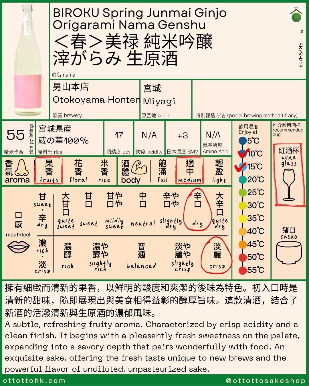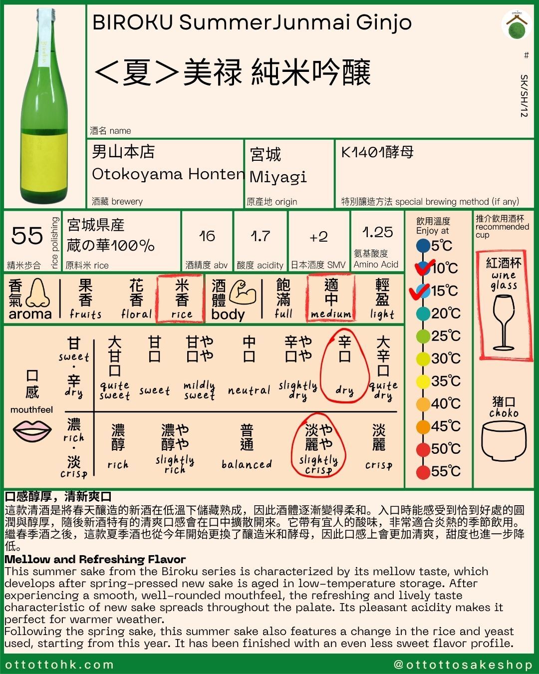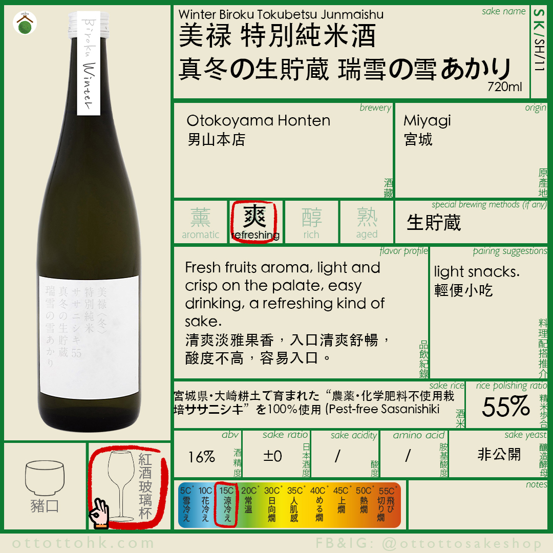 「Biroku」清酒之出貨情況將視供應及季節因素而定。